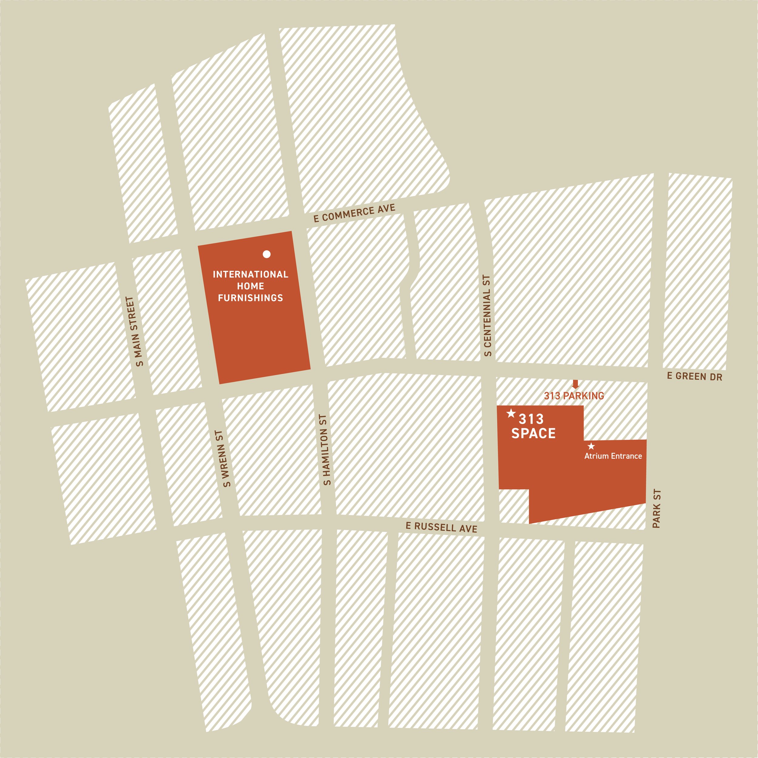 Just a quick 5 minute walk from the center of the market at the IHFC Transportation Hub, 313 offers an unexpected and rare tranquil oasis in the heart of High Point. This convenient location is nestled within verdant garden surroundings and offers plentiful parking; enter on E. Green between Park and S. Centennial for parking lot. Learn more about HighPoint Market here.