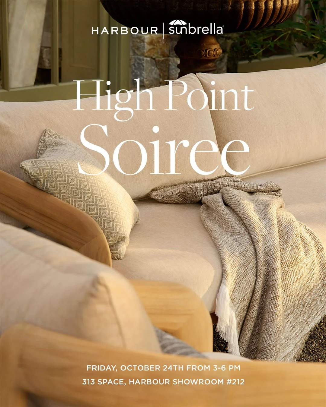 Join us for a special event on Friday, October 24th at the 313 Space in partnership with Sunbrella during High Point Market. Guests will enjoy curated drinks and seasonal bites while previewing Harbour’s latest collections and discovering our new signature textiles, created exclusively with Sunbrella. The evening will feature interactive experiences designed to immerse you in the artistry of our materials and the innovation of our craft - a celebration of design, community, and inspiration not to be missed.