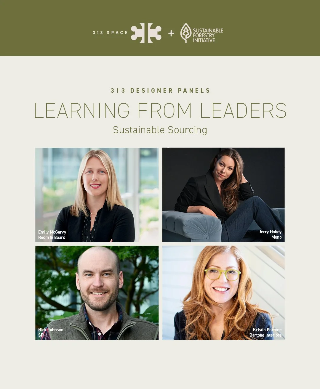 Designers, Buyers + Consumers: What do They Want? Kristin Bartone, Bartone Interiors, will moderate an informative discussion with Nick Johnson, SFI Director, Emily McGarvey, Room & Board, Director of Sustainability, Jerri Hobdy, Meno, Founder and Principal Designer.