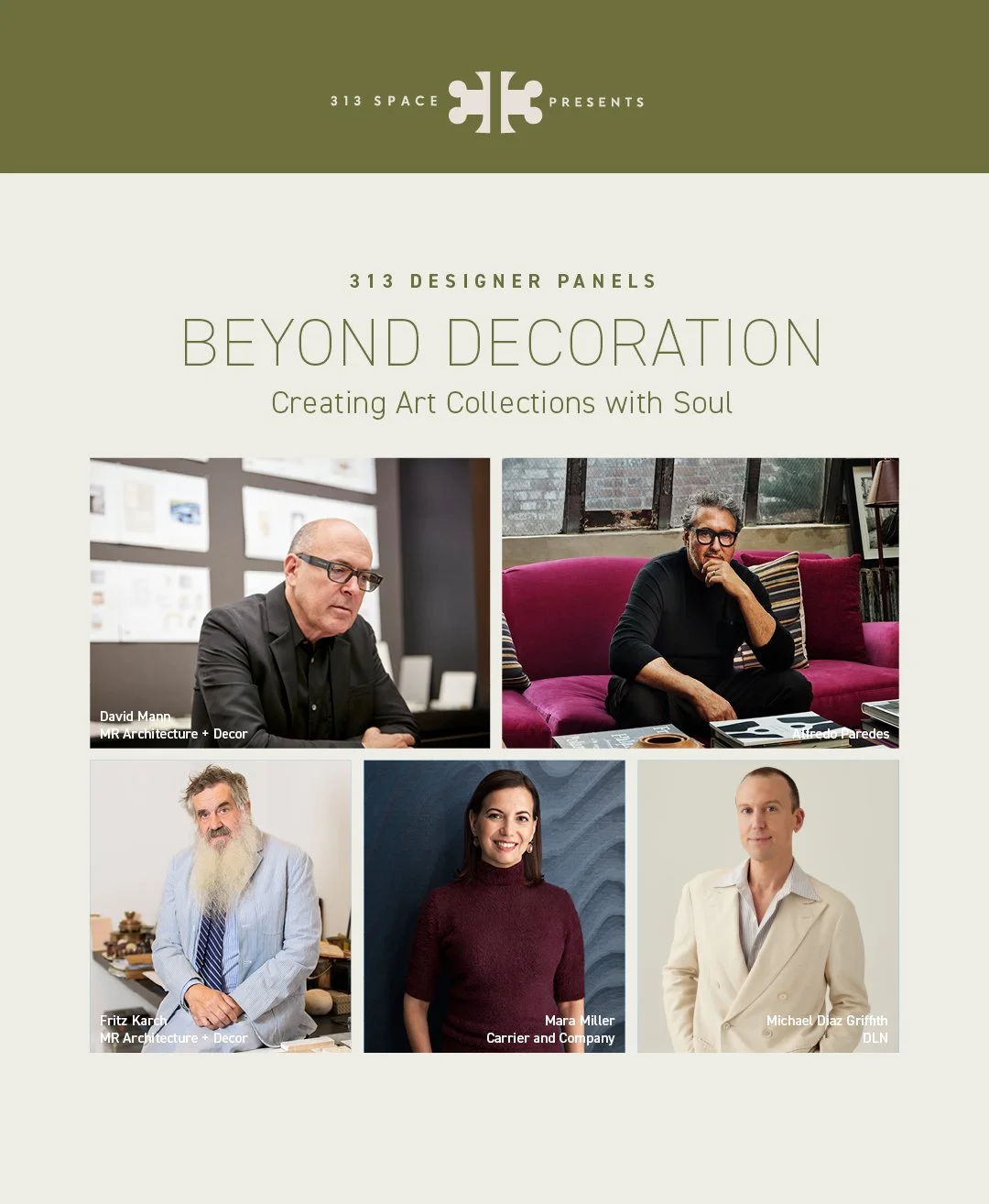 The intersection of personal passion and thoughtful design. Michael Diaz-Griffith, Design Leadership Network President, moderates a conversation about creating soulful art collections with panelists Alfredo Paredes, Alfredo Paredes Studio, David Mann, MR Architecture & Decor, Fritz Karch, MR Architecture & Decor, and Mara Miller, Carrier and Company.